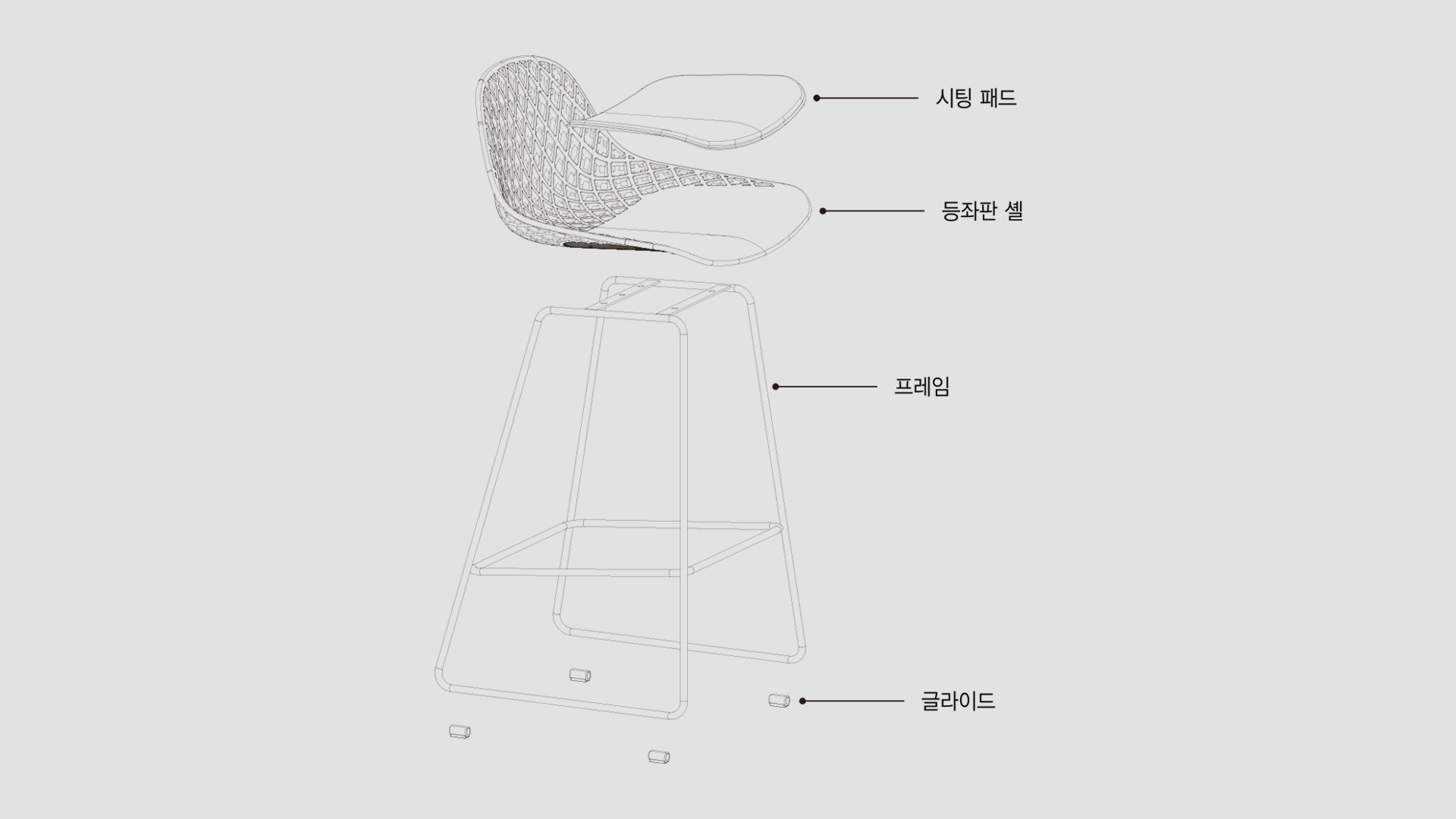 일체형 등좌판에 장식된 고난도의 정교한 3D 패턴 홀 디자인은 종래의 의자들과는 비교할 수 없는고급스러운 심미감을 자아내며, 플라스틱 성형 사출 자체의 탄성으로 적절한 틸팅감도 지니고 있어 사용자 만족도도 크게 향상될 것입니다.